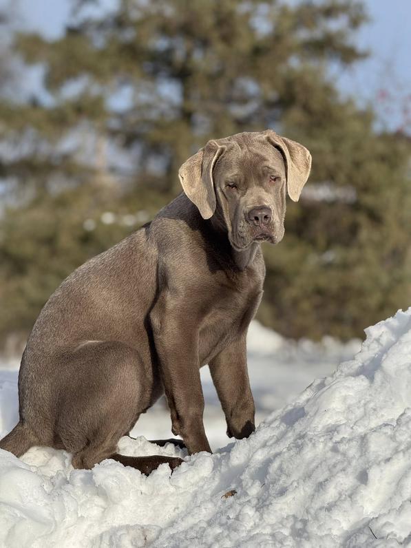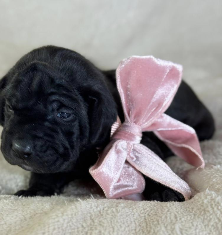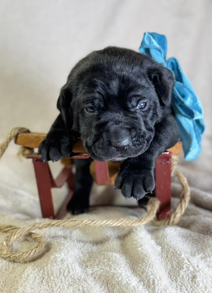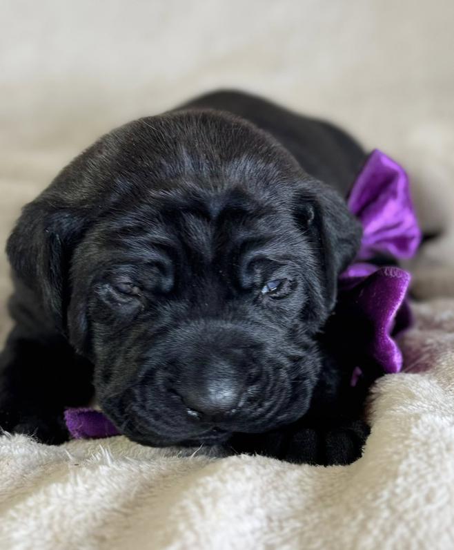 Sweet silly fun cuddlebug. Playful but mastador mellow. Loves to snuggle. Puppy Dog eyes that will melt your heart.