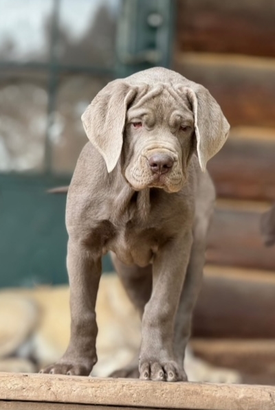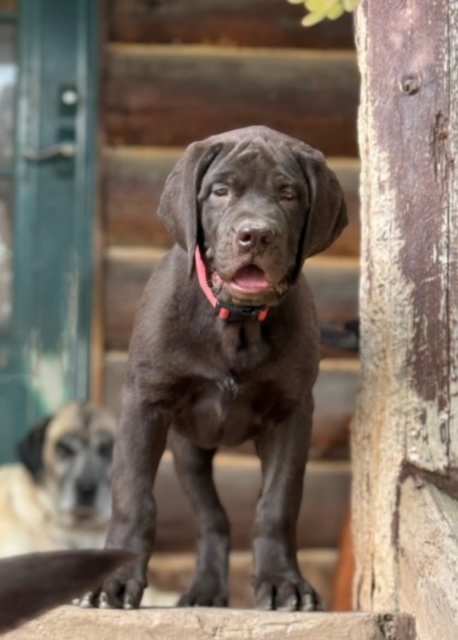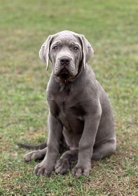 Gonna be a BIG girl. On track for 140+ lbs. Sweet puppy playful but Mastador Mellow. Confident, Curious pup.